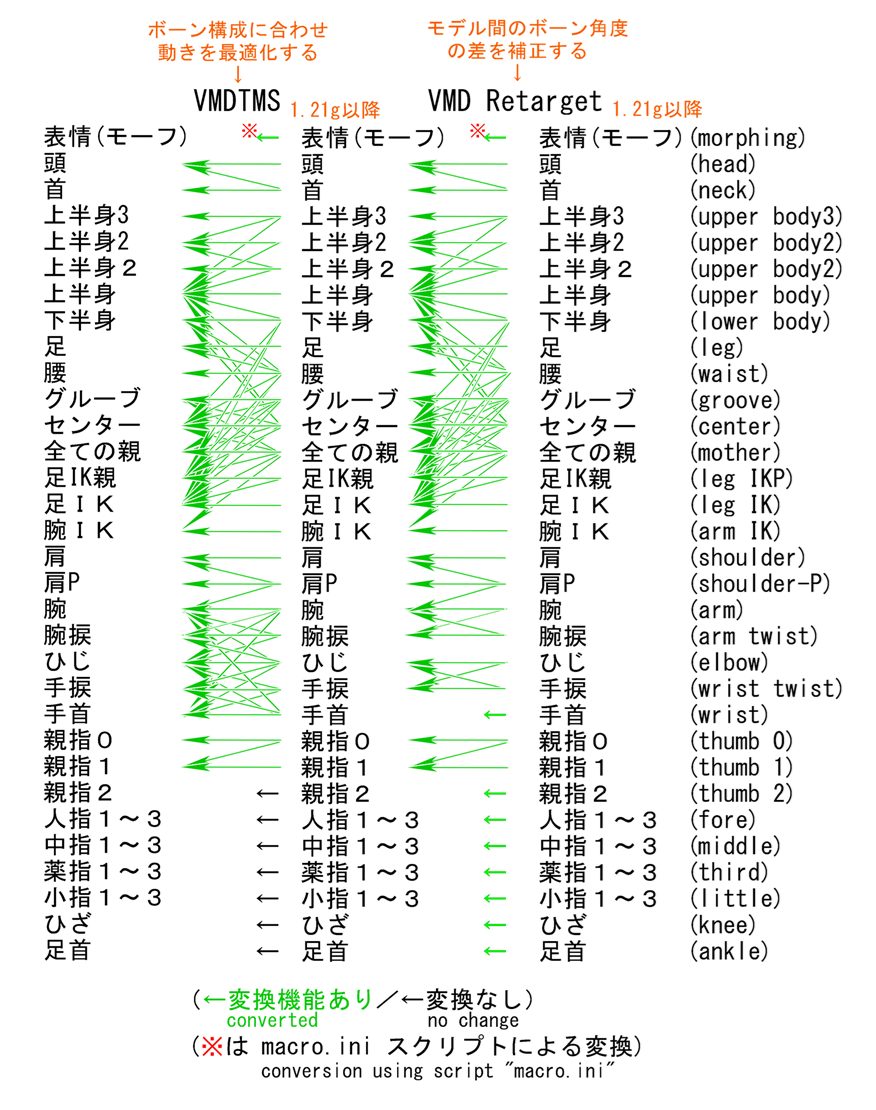 (PMX→VRM) (VRM→VRM) (VRM→PMX) (PMX→PMX) でも相互に補正ができるよう設計したものです。